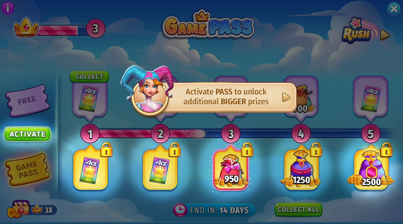 To upgrade your prizes, you can click on ‘Activate’ and make a purchase. This action will initiate the Game Pass!